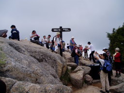 この2人も岩場で小休止していた。やがて目の前を親子3人が通り過ぎた。小学生でしかも女の子2人である。距離と時間からは初級コースだが山頂直下の岩場は中級なのでファミリーコースとしてはのぼり応えがあるであろう。