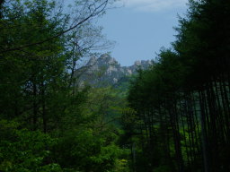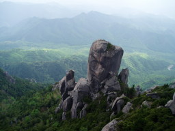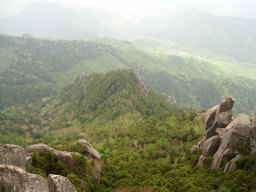 ゴツゴツした岩ではあるが結構広いので奥のほうに行き、暫く休息した。山頂からの展望はすばらしく、眼下の新緑が目に眩しい。