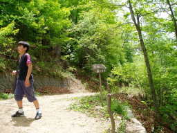 | 瑞牆山まで4.0キロの標識 | 新緑を歩く |