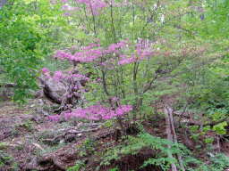 ここで分岐で西に進めば金峰山に至る。進路を北にとる。緩やかな登りを歩くとピンクの花が咲いていた。アズマシャクナゲである。6月初旬から山頂直下では6月の中旬が見頃と本に書いてあるが今年は気温が高めなのでちょうど今が見頃となっていた。