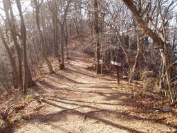 やがて道は緩やかになり、落葉樹の葉の落ちた樹林の尾根道を歩く。葉っぱが無いので割と見通しは良い。