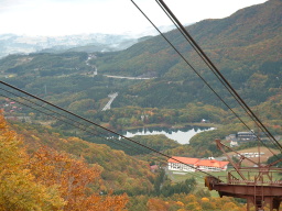 いくつかロープウェイがあるが今回は蔵王ロープウェイ山麓線に乗る。蔵王も紅葉が見ごろだが、ロープウェイの降り場の樹氷高原駅周辺は松やシャクナゲなどの緑木も多い。この辺りは冬はスキー場のゲレンデになる。