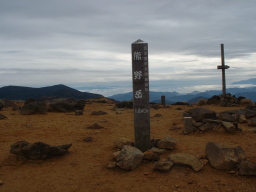 レストハウスの脇を通り少し登ると刈田岳山頂1759mである。駐車場から数分なので熊野岳より人は多い。で、刈田嶺神社に参拝している人がかなりいた。