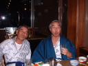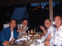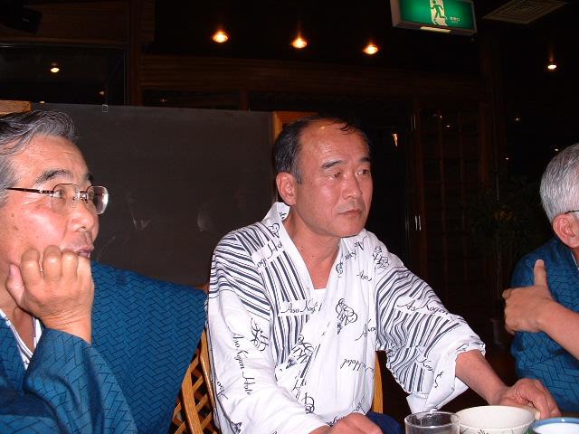 ゆっくり温泉に入った後はお楽しみの会食 阿蘇の赤牛(肥後牛)のバーべキューとビールに各人が持参した地酒で盛り上がった。