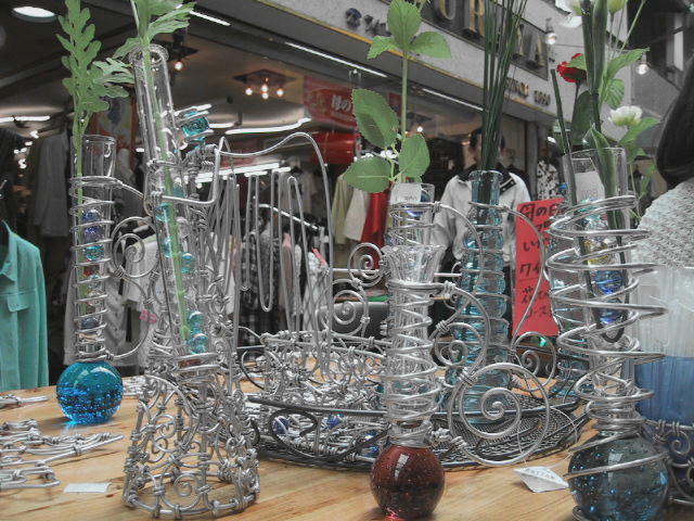 5/12 に唐人町商店街で行った クラフト屋サンの模様とその作品です 写真の提供は クラフト屋事体も手伝ってくれた ミーサン です 本当に ミーサン には感謝です 今回の クラフト屋サンは 母の日 の前日という事もあり 花瓶やワイングラスにワイヤーを巻きつけ 模様にしたり 取っ手を付けたものを中心に製作 販売しました