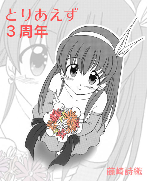 ときめきメモリアル:藤崎詩織 こちらも詩織を描く目的で製作。 ・・・すいません嘘です(笑) 記念と言うのだからやはり詩織でしょう!と言うことで描きました。 ポイントは花束だけがカラーだと言う点。 ドレスはヘアバンド以外はイラストを参考にしています。 瞳がお気に入りです。