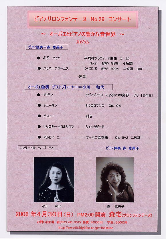 2006年 春爛漫、当サロンフォンテーヌは、オーボエのベテラン、
