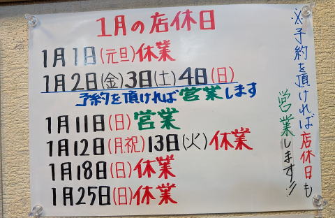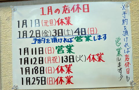 毎週日曜と第2月曜 (月曜祝日の場合、日曜営業、月曜休み) ![]() |