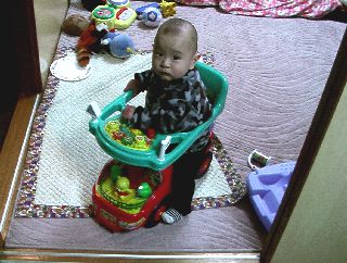 | ◆ 2002.02.13 ◆ 「俺のマシーン!」 先日、蒼弥専用車を購入。 まだ自分では進めないので、 |
