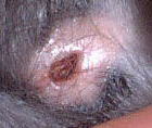 ちっちゃい跡は、ハゲになり、ちょっと大きいのはかさぶたが出来・・・