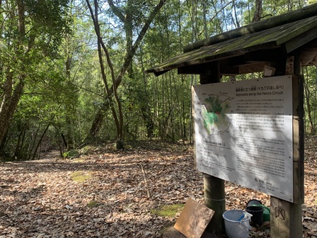 十九丁をあとに道を進める。香川県内は右写真のような看板が多く設けられていて、遍路の歴史はもとより動植物の自然にまつわる案内も多い。 この辺は順打ちの時に道を間違えた場所であり、注意して歩く。 |