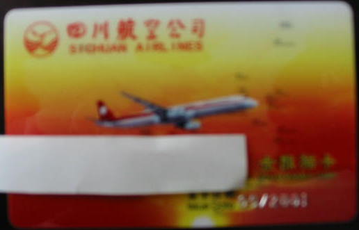 12歳以上の四川航空顧客対象。HPからの申し込みはできません。昆明空港でもまったく宣伝しておらず、あるのか無いのかわからなかったのですが、本拠地成都の空港窓口で申込書をゲット、申請書に記入しました。2001年7月スタートの新しいFFP。