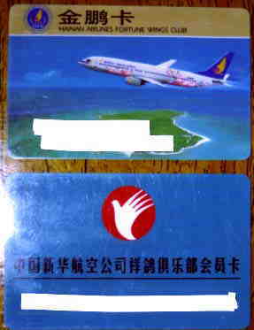 12歳以上の海南航空グループ(海南航空、山西航空、長安航空、新華航空)顧客対象。申込書に記入の上送付するか、HP上からもオンライン入会可能(私が試しました)。2001年末に新しいICカードを発行、会員番号も変更になりました。HP上での累積距離確認も可能に。さらにICカードの搭乗時機内読取り方式となったため、会員番号シールを航空券に貼る手間がなくなりました。