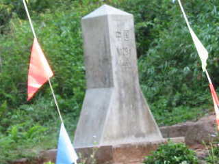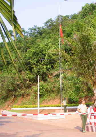翌日、いよいよ国境越え。香港〜深センは国境とはいえないので、これが中国陸路国境越え初体験だ。8時開門と書いてあったが、実際は8:30に手続きが始まった。道端の出入国管理事務所で出国手続き。パスポート用のカードは空港のものと同じだった。「ラオスに何しに行くの?」「メーデー休みの休暇。」これでOK。出国スタンプの押されたパスポートを道路脇の検査官に見せて遮断機を通過。軽トラックだとラオス側まで2元とのことだったが、折角なので歩くことにする。何やら工事中の埃っぽい道を緩やかに登っていくと、「昆明〜ビエンチャン国際バス運行開始」の赤い祝賀幕が見えてきた。その脇に国境の石碑が。ちょっと古めかしいと思ったら、その先10mのところに、こちらはピカピカの国境石碑。手前に「中国」、反対側に「ラオス」。どうして10m動いたのかは不明だが、ともかく記念写真を撮る。ここから道は下り坂になる。通りがかった雲南ナンバーの車が止まり、乗っていけとのこと。見ると、先ほど手続きが始まるまで世間話をしたおじさん。ビエンチャンで仕事をしており、この車でビエンチャンへ行くとのこと。良かったら一緒に乗っていかないかとのことだったが、こちらとしては折角だからラオスのバスを使いたいところ。ラオス側ボーテン管理事務所で下ろしてもらい入国手続き。入国カードは置いてなかったが、去年余分にもらってきたカードに必要事項を記入済みだったので、あっという間にスタンプが押されて戻ってきた。ここでも道端の検査官に呼び止められ、スタンプ確認の後ラオス入国。道端の銀行で800元を920000キップに交換。あれあれ、1年の間にずいぶん下落している。受け取った札束を見て頭は混乱。なにしろこの国の最高紙幣は5000キップ、元に直せば5元札以下である。