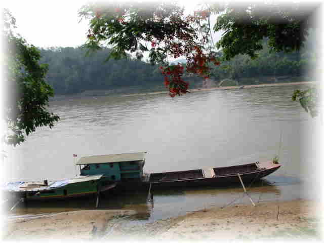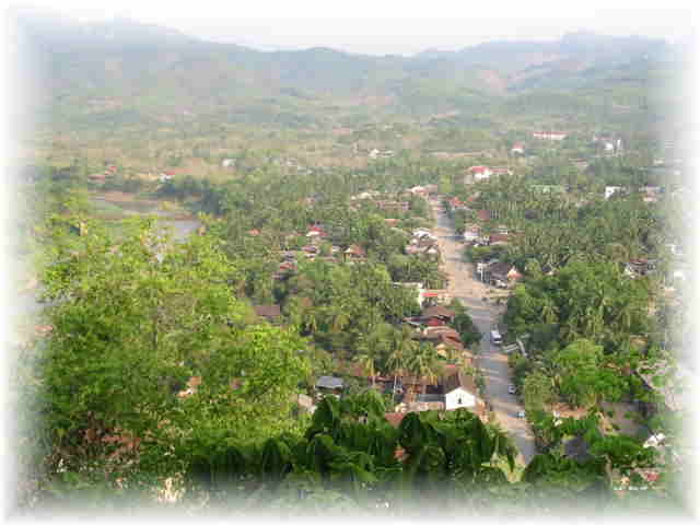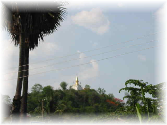 一休みしてからまずラオ航空オフィスへ帰りの航空券のリコンファームに行く。オフィスはいかにもお役所みたいなつくりだったが、職員はフレンドリーで、中国から出たことを実感できた。リコンファームの間、窓口のお兄さんと日本語講座&ラオス語講座の交換授業。今度はちゃんとパソコンをたたいていたので、少し安心した。続いて王宮博物館、と思ったら、まだ閉館まで30分あるのに「今日は終了しました。」だと。気候を考えて開館時間を設定して欲しいところだ。仕方が無いのでメコン河岸で佇んでから、プーシーの丘に汗だくになりながら登る。頂上では何人もの人が風に吹かれて街を見下ろしていた。ルアンパバーンは古都だけあってお寺だらけの町らしく、宿の前に1つ、ここまでの道すがらに1つ見てきた。今度来る時はもっと涼しい時に余裕を持って来たいと思った。