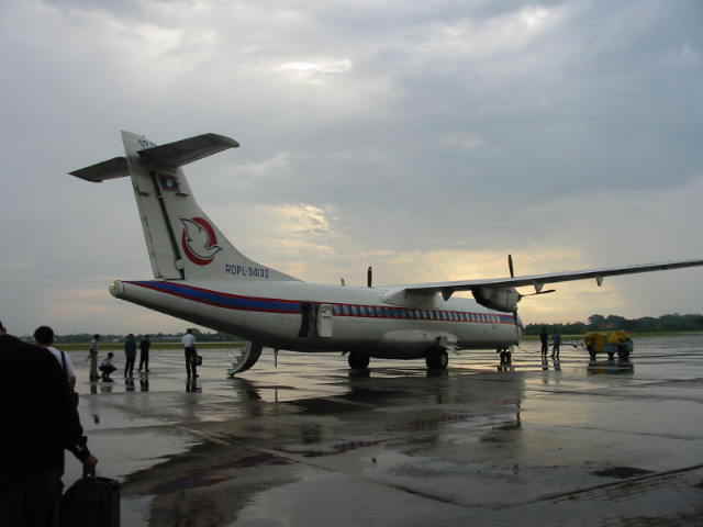 最終日、5時起床。シャトルバン出発は6時と言われていたが、ラオ航空の出発時間が7:30なので、早めにチェックアウト。バンの客は僕一人だったので、少し早めにホテルを出発した。空港までの道中、朝からバケツをぶちまけたような雨。一応ラオスの別れの雨ということにしておこう。空港では係員が「Kunming?」と聞いてきた。こんな朝早い便は昆明行きしかないらしく、空港はガラガラ、搭乗手続きはあっという間に終わる。でも、売店のシャッターもまだ閉まっており、さっさと出国する以外にない。ラオ航空とはいえども、乗客のほとんどは中国人。全部で40人ほど。タイ方面と違い、連休とはいえ満席ではなかった。7時、ゲートが開き、ラオ航空のATPプロペラ機に向かう。日本外務省に「安全性に問題あり」と言われてしまった航空会社だが、「ただしATP便は除く」ということになっているので、とりあえず安心して乗ることにする。ATP以外、というのはラオス国内線を飛んでいる中国製のY-7,Y-12ということになるが、中国で飛んでいるY-7についての外務省の見解はどうなのだろう。