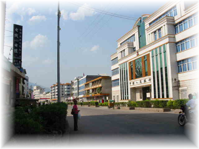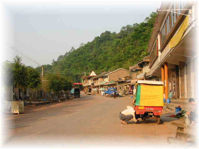 モハン行きのミニバス、客が少ないにもかかわらず定刻に発車。でも途中ガソリンスタンドに寄ったりしながらも客を拾い、いつのまにか結構な乗車率に。このバスの運転手、選曲が変わっている(中国のバスは運転手の気分次第で音楽テープを流しながら走る)。一般的には歌謡曲系なのだが、このバスでは外国の音楽を集めたイージーリスニング風。禁じられた遊び、アルハンブラの思い出などに混ざって、北国の春だの瀬戸の花嫁なんかも流れてくる。国境へ向かうバスでこんな音楽を聴くとは思っていなかったが、うるさい歌謡曲と違いBGMとしては満点である。緑の中を抜け、モハン鎮政府やマーケットなどが現れる。客がぞろぞろ降りていくので、到着したかと思ったら、運転手が「国境はまだだ」と言い座りなおす。「モハン鎮」と「モハン国境」は別物だった。国境までの客は僕一人。運転手に「さっきの音楽、なかなか良かった」と言ったら、「日本人か?」と聞いてきた。どことなく日本にいる中国好きの親戚に似ている。その後国境までの10分くらいは、2人で日本歌謡大会とあいなった。バスはホテルの門前で停車、名残惜しい別れだった。