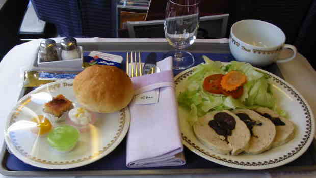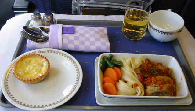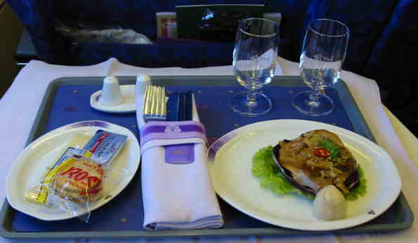 タイ航空 昆明〜バンコク機内食。Cクラスだよーん!左は前菜状態。右がメイン状態。