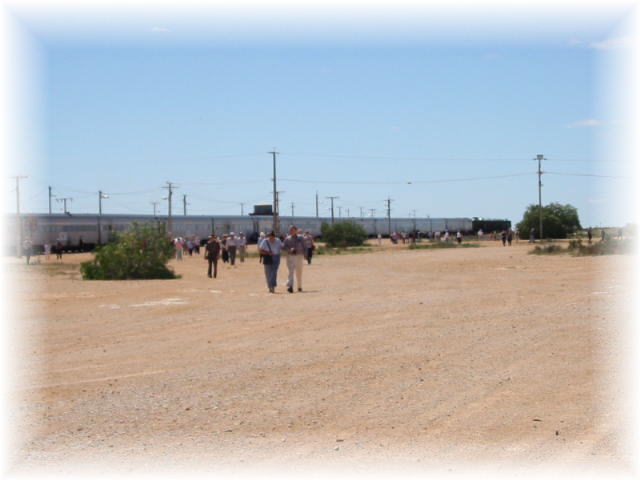 ともかく近郊列車に「ケズウィック」駅があることが判り、そこで下車。長距離列車の駅からは少し離れていたが、橋を渡り道を進み、少し迷って駅に到着。銀色に輝くあこがれのインディアンパシフィックはすでに目の前だ。チェックインタイムは出発の30分前などともっともらしく書かれているし、第一チケットと言って渡されたものが、表紙の中にA4判のタイプされた紙1枚。ボーディングパスでももらうのかと思ったがチェックインカウンターはどこにもない。聞いてみると、直接車掌に渡すようにとのこと。どうも日本や中国の鉄道とは勝手が違う。発車1時間半前に駅に着いたが、まだ乗車の準備が出来ていないようで、昨日はひっそりとしていた駅は人であふれかえっていた。