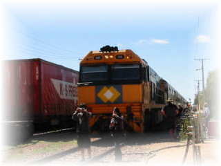 ホームで記念撮影。自分の座席車が戻ってこないといってホームに佇んでいた中国系マレーシア人とお話し。やはり中国語は偉大だ。自分の車両の前で記念撮影をしようと、近くにいた人に声を掛ける。やはり同胞というのはわかるもので、日本人留学生、Tさんだった。なにやら駅の放送が…。Tさんが係員に聞くと、列車は少々遅れるので駅舎で待つようにとのこと。そういっている間に列車がそろりそろりと動き出す。係員の返事は、「試しに動かしているだけ」とのこと。うーむ。オーストラリアの鉄道はよくわからない。
