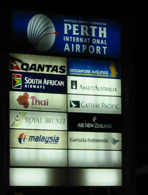 再見!パース。 …パース空港国際線ターミナルの看板。少し寂しい?(右)