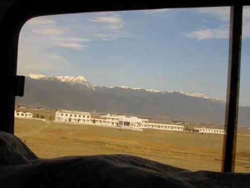 こちらは眠ったり起きたりしながらだがバスは進んでいるようだ。最初の2時間くらいは日本人張りに時計を見たりしていたが、楚雄で高速道路に入ってからは流れに身を任せるようになる。気がついたら一般道を直走り、橋を渡って橋頭(香格里拉県開発区」)に到着。あとはうつろな目で車窓を眺めながら高度を稼ぐ。まだ緑になっていない草原を走り、次に我にかえった時には空港が見えた。荷物をまとめているうちにバスターミナル着。時の流れと言うのはこちらの考え方次第でどうにでもなるもの、ではある。時刻は丁度1時間半遅れの9時半。
