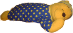 プーの抱きまくら Size :約55cm 2000年、TDLで購入 パジャマとおそろいのナイトキャップをかぶっています。毎晩一緒に寝ています。 |