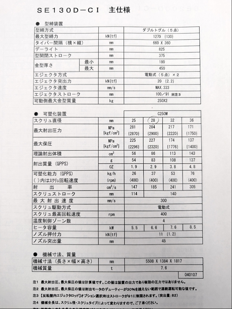 SE130D-C1 SUMITOMO C250 2色電動機 2004year