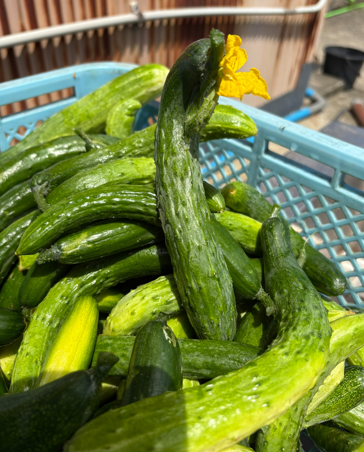 ようやく胡瓜の草取りに取り掛かることができるようになった。胡瓜の苗は、玉ねぎの収穫あとに植え付けてある。玉ねぎの収穫したあとに耕すことをしないで、そのまま苗を植え付ける、ということを何年も続けている。苗を植え付けたあとに堆肥をまた継ぎ足していく、というスタイルだ。草取りをしていると、本当にミミズがたくさんいる。耕してないので、玉ねぎ栽培時に置いた堆肥がぼろぼろになって、土が良い感じだ。草取りも、鎌で地上部との接点を刈り取っていくだけなので、土と相まって、とても心地よいのだ。