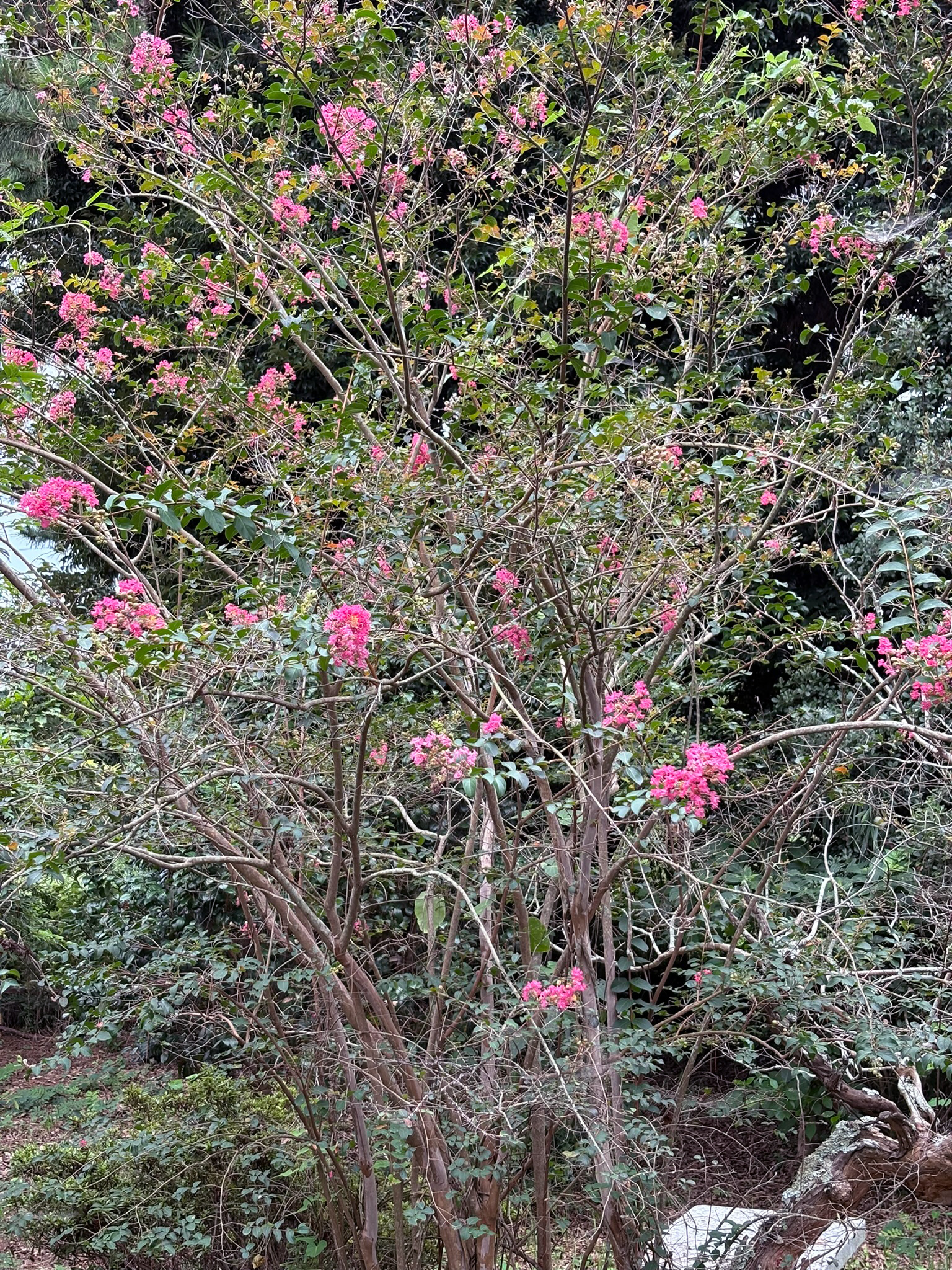| うちのサルスベリはお彼岸を前にしてようやく花盛り |