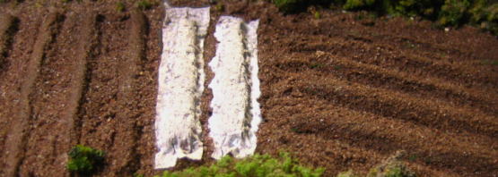 ▲ 畦道や水路周りをパウダーで表現する。(隙間を埋める)