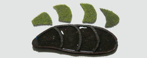 ▼ 整形後、外葉の色に合わせてウェザリング的に調色した。
