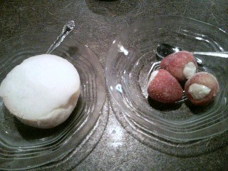 | 海鮮チヂミ | 冷麺 | ピーチシャーベットといちごアイス |