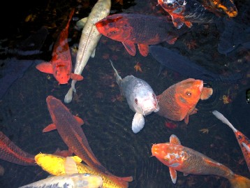 | 池にいたコイです。人に慣れていて、エサをくれると思って、大きな口を開けていました。 | 紅葉がきれいでした。もう少し早い時期だったらもっときれいだったでしょうね。 |