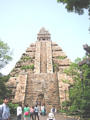 インディ・ジョーンズの助手、パコが企画した"若さの泉"を探しだす魔宮ツアー。ところが招かれざる客の侵入に魔宮の守護神クリスタルスカルの怒りが大爆発! スペースマウンテン+スプラッシュマウンテンのような・・・でも、かなりおとなしめです。もうちょっと絶叫感があっても良いかな〜って思いました。 |