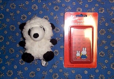 2001.9.30 渋谷にて 久しぶりにゲーセンの前を通ったらやっぱりちょっと寄って行こう・・・(^-^; 100円玉が4枚だけあったので、それだけでGETしました。MIFFYちゃんの電卓&Snoopyのかぶりもの(羊)です。結構カワイイです。お決まりの娘行きです。 |