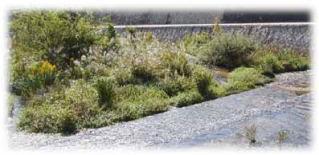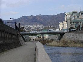 住吉川を中心に建築物の屋根の色が「環境色彩」を採り入れたかのように感じられる。